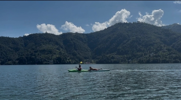 Eftermiddagene står åbne for os til at bruge dagen, som vi vil, og Pokhara har masser at tilbyde af både rolige og udfordrende aktiviteter. Lige nu begynder regntiden at være forbi, og for første gang kan vi se konturerne af bjergene. Fra tagterrassen på hotellet kan vi skimte både Annapurna South og den ikoniske Macchapuchhre, eller Fishtail som den også kaldes.