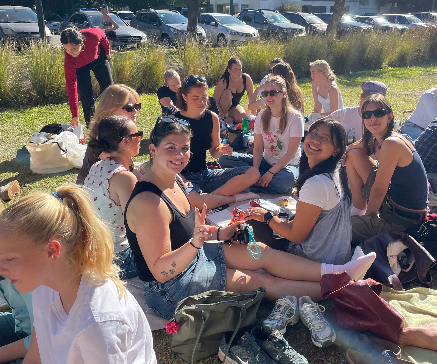 Der var lagt picnic-tæpper ud med mate-kopper, yerba, kiks og kager, og på alle tæpperne sad der glade skandinaver, som var overlykkelige for at se solen.
