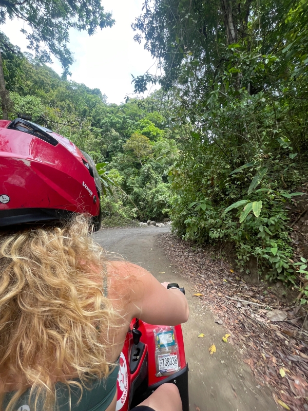 Vi startede ATV-turen på skovstier gennem junglen, kørte til smukke hvide strande og videre til Montezuma Vandfaldene, store vandfald som ligger en 10 minutters gang fra vejen.