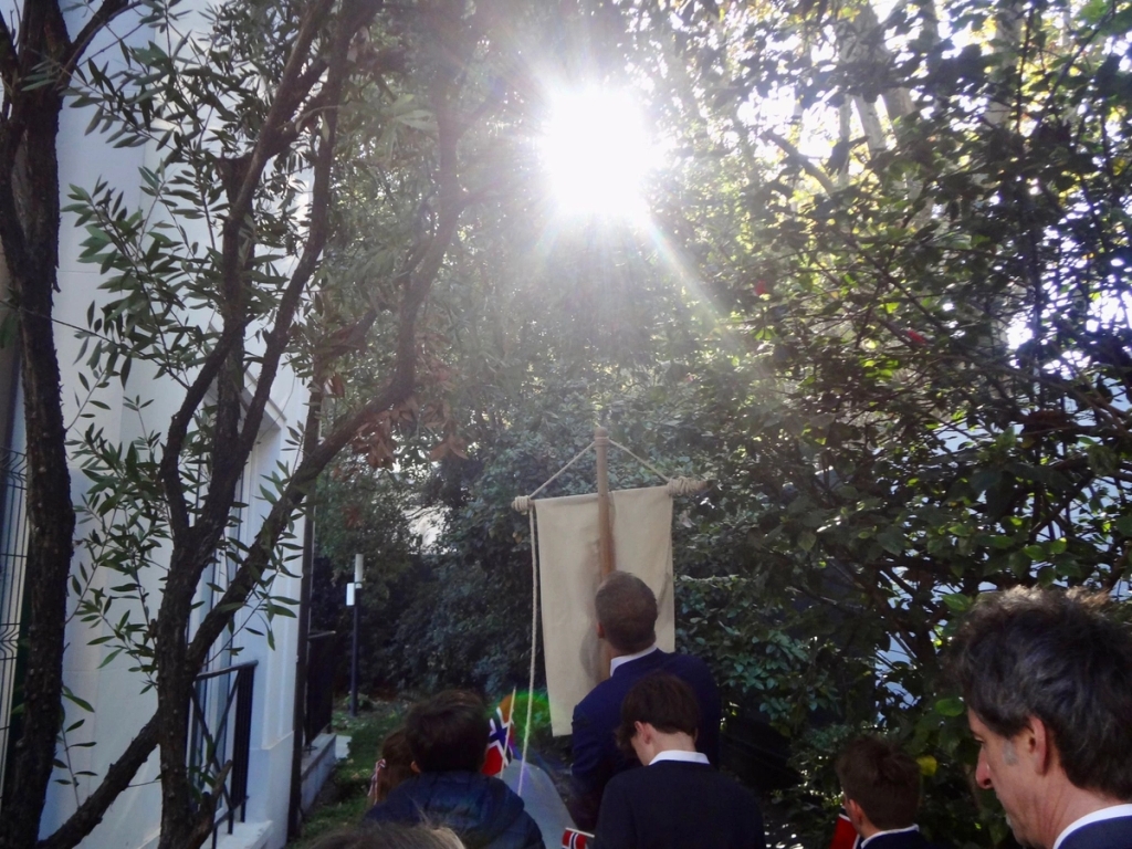 Ambassadøren, Halvor Sætre, holdt en tale før vi gik i 17. maj-optog. Ved afslutningen af morgenmaden havde vi lege for de mindste børn, hvor præmien var et stykke Freia mælkechokolade.